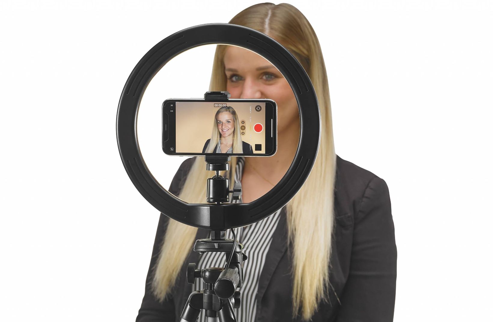Mit dem ALPHA 1000 Vlogging Kit verfügt die ALPHA-Stativreihe über ein Modell, das sich vor allem an Handyfans richtet. Es ist mit einer Ringleuchte ausgestattet, die über 120 leistungsstarke, dimmbare LEDs verfügt. Drei verschiedene Farbtemperaturen – 3000°K, 4500°K oder 6000°K – stehen zur Verfügung.
