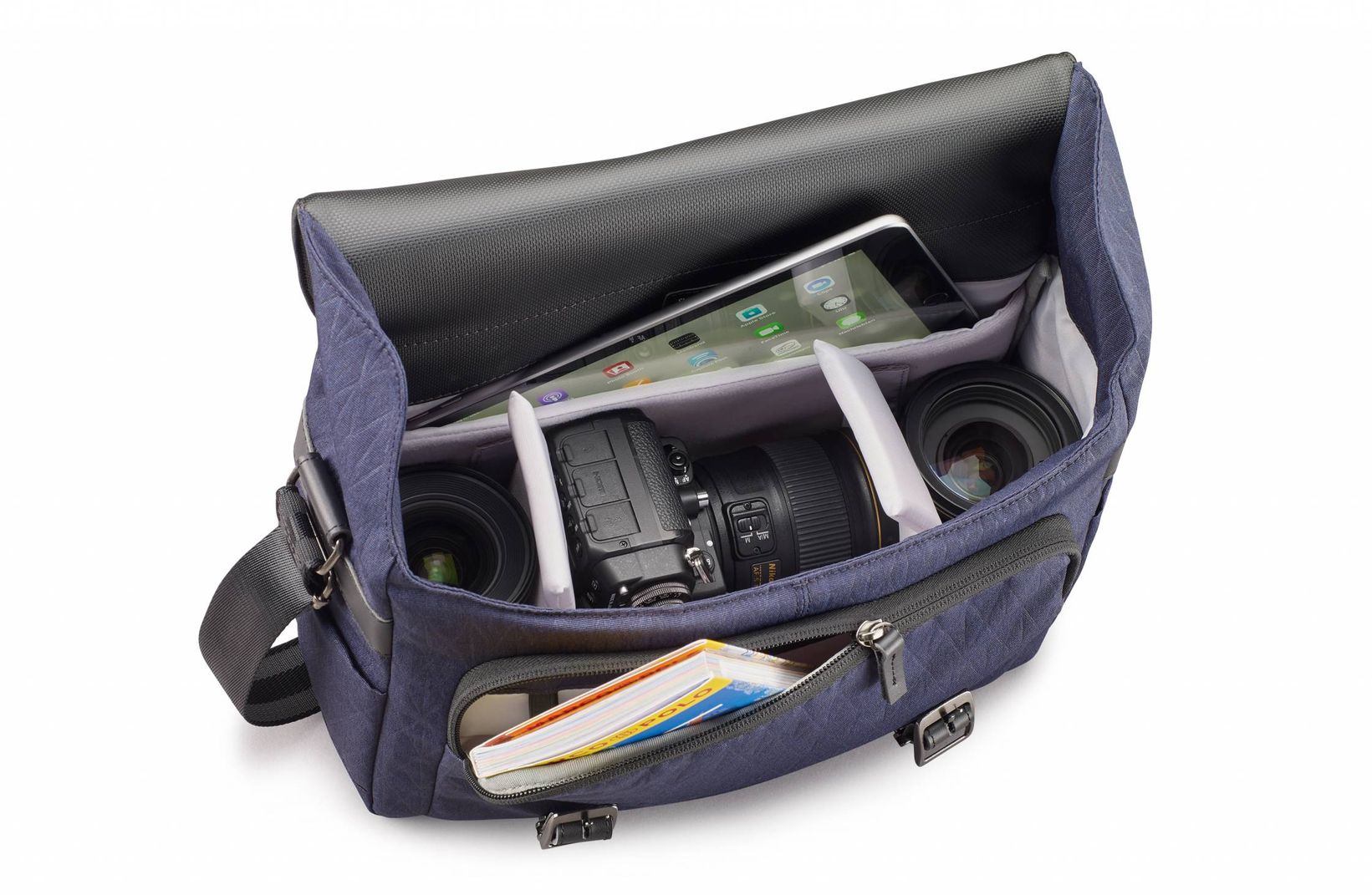 Allen BRISTOL Taschen gemeinsam sind der seitliche Schnellzugriff auf das Kamerafach und die gepolsterten, längenverstellbaren Schultergurte. Sie schaffen Tragekomfort und erleichtern die Bedienung. Im Innern der Maxima 322+ und der Maxima 333+ – gleichgültig, in welcher Farbkombi – befindet sich ein integriertes Tabletfach, der DayPack 600+ hat ein Notebookfach.
