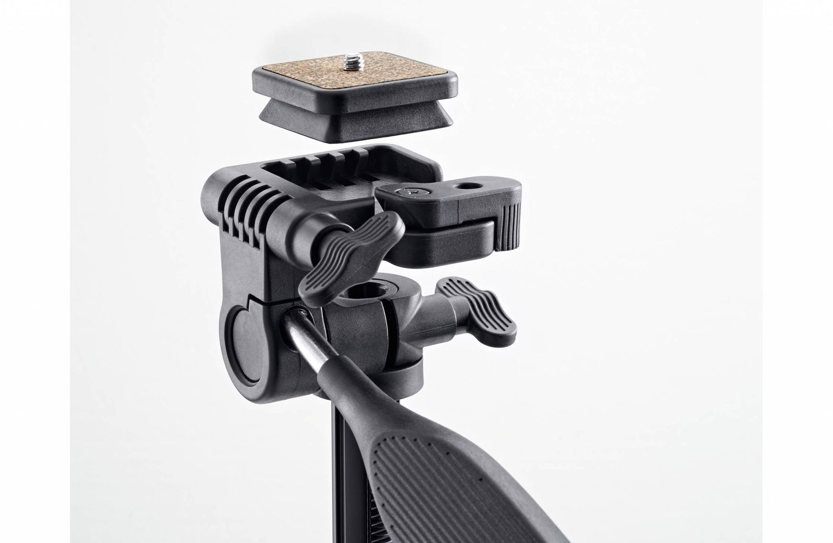 - Robuste Kameraplatte mit rutschfester Korkauflage