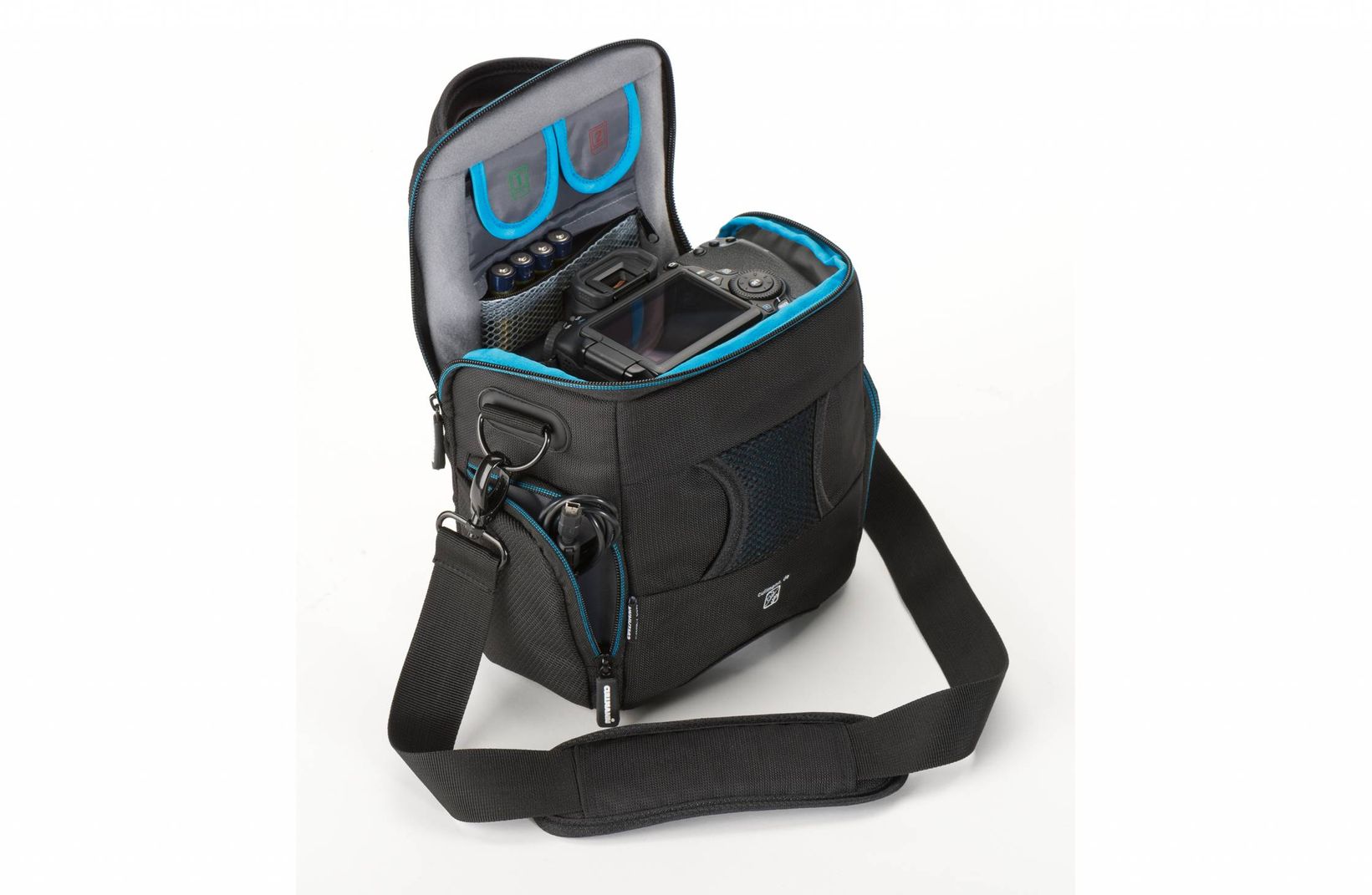 Zuverlässigen Schutz gegen Regen und Sonne garantiert das im Taschenrücken verstaute, passgenaue RAIN / SUN Cover. Verdeckt ausgeführte Reißverschlüsse verhindern zusätzlich das Staub oder Feuchtigkeit eindringen können. Praktische Speicherkartenfächer mit Farbkennzeichnung sorgen dafür, dass Fotografen ihre verschiedenen Speicherkarten auf einen Blick richtig zuordnen können. Zum Verstauen von persönlichen Utensilien und verschiedenem Fotozubehör besitzt die SYDNEY pro Zusatzfächer mit Reißverschluss und variable Inneneinteiler.